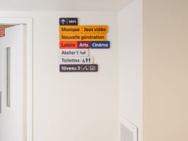 Signalétique de la Bibliothèque publique d'information (Bpi) du Centre Pompidou.